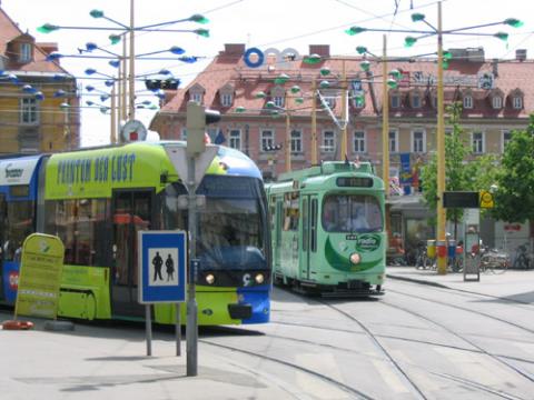 - ...Grazer Strom! TW 525 und 535 bei der Station Hilmteich. (Das