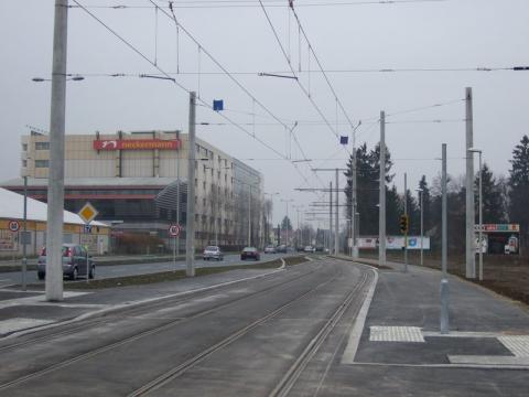 Neubaustrecke bis hin zur Station 'Maut Puntigam' in Hochkette ausgeführt.