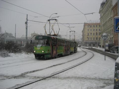 Dann noch Wagen 7016 auf der Linie 26 zur Divoká Šarka im Schnee bei der