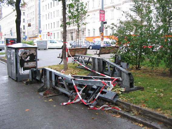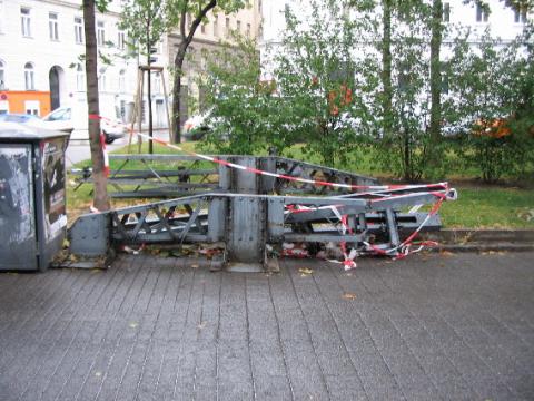Straße entfernt wurden und jetzt am Gehsteig entlang