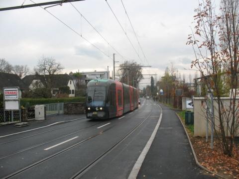 2. Die Schienen führen dann etwa 400 Meter die Peterstalstraße entlang bis zur Endschleife, die am ...