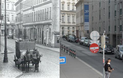 >Preßgasse zwischen Rechter Wienzeile und Mühlgasse (hinten).