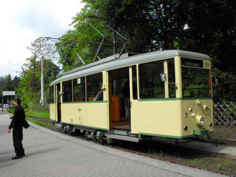 Woltersdorfer Straßenbahn. Heute fuhr der KSW Prototyp mit der Wagennummer 7