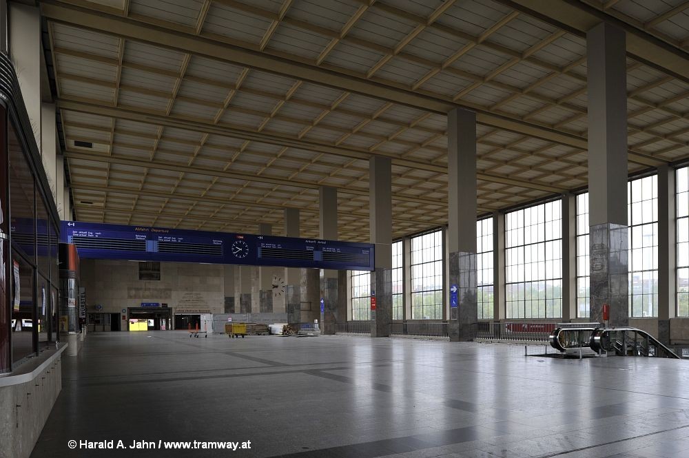 Fahrkartenschalter eingebaut. An der rechten Schmalseite der Halle befindet