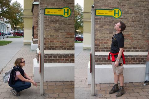 bestehende Tafel herum den Gehsteig neu gepflastert haben. ;)