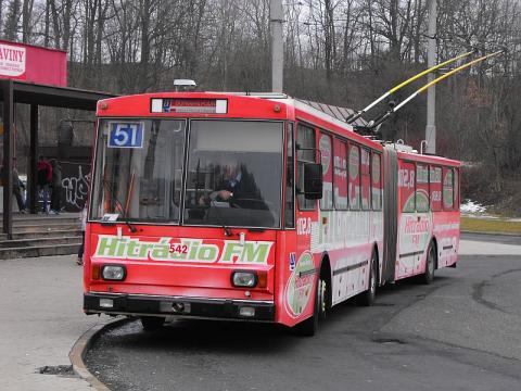 Wagen 542 ist ein Skoda 15Tr 08/6 von 1992. Der Bus trägt eine Vollreklame