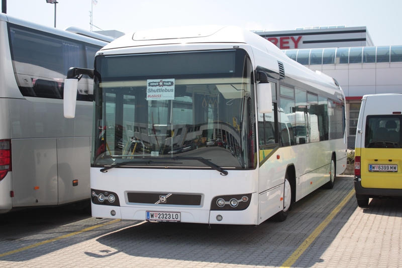 Der Testbus, Volvo Hybrid ex 8600 steht zur Zeit in der Richard Strauß Strasse und wartet auf sein weiteres Schicksal. Er wurde auf das Wiener Kennzeichen 2323 LO angemeldet. (Bei den Wiener Linien fuhr er anfangs
