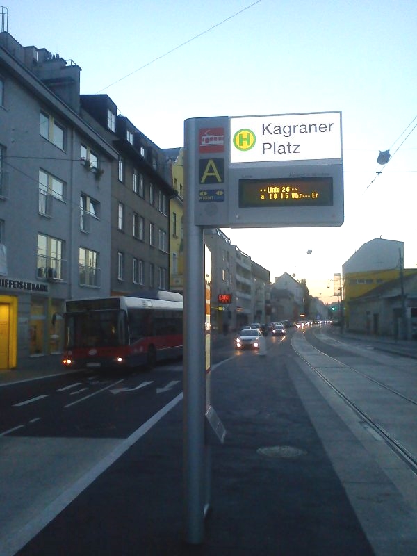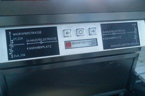 Weiters ein viel größerer Fahrplan und Linienanziegen, alle hinterleuchtet auf einer Säule.