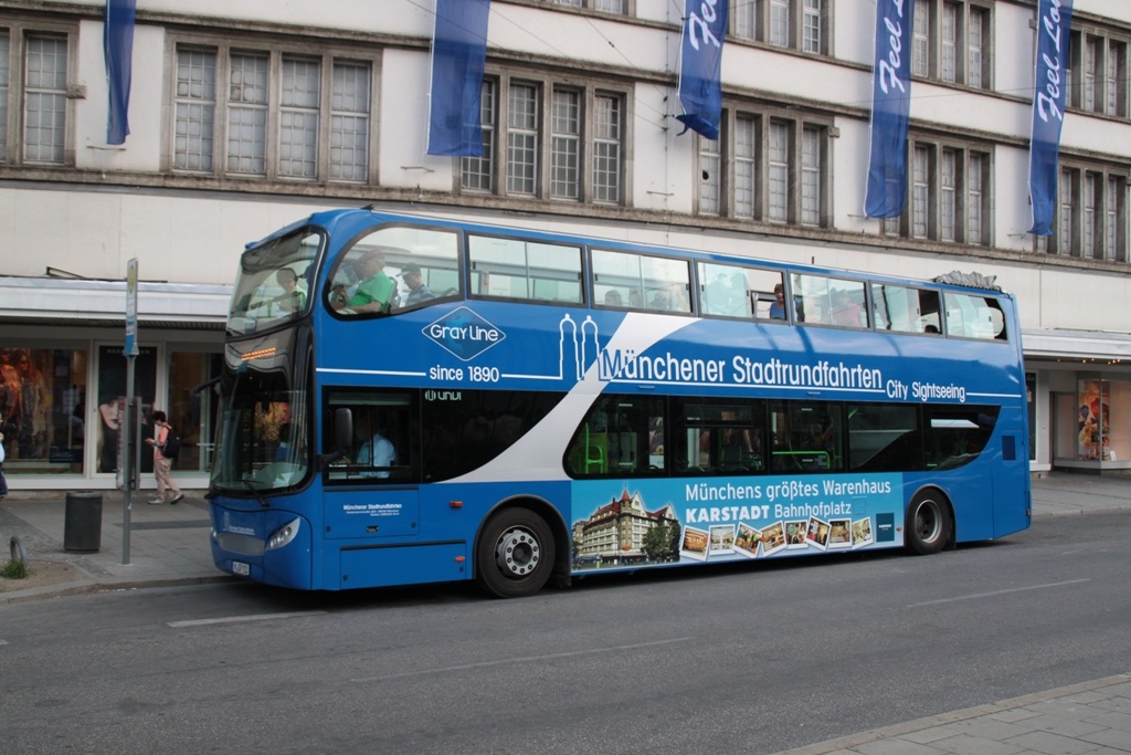 auch MAN UNVI unterwegs, mit offenem Verdeck. Trotz Oberleitung von Straßenbahnen (welche hoch genug hängen)
