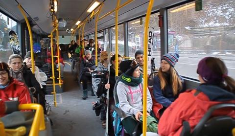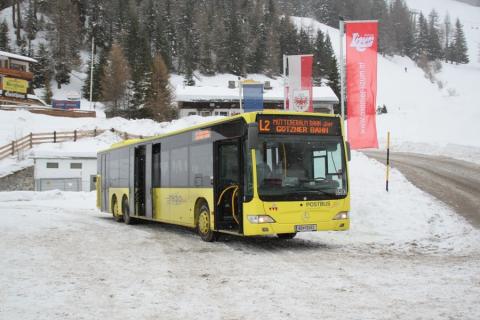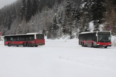 Gezeigt werden die Busse auf den Schibuslinien L1, L2 im Axamer Lizum und Innsbruck Hauptbhf.