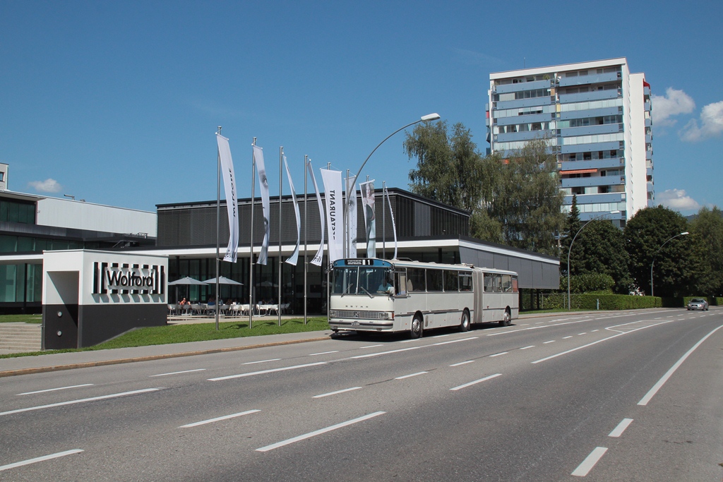kurzen Fotohalt vor der bereits modernen Strumpfhosen-und Dessousfabrik Wolford machte.
