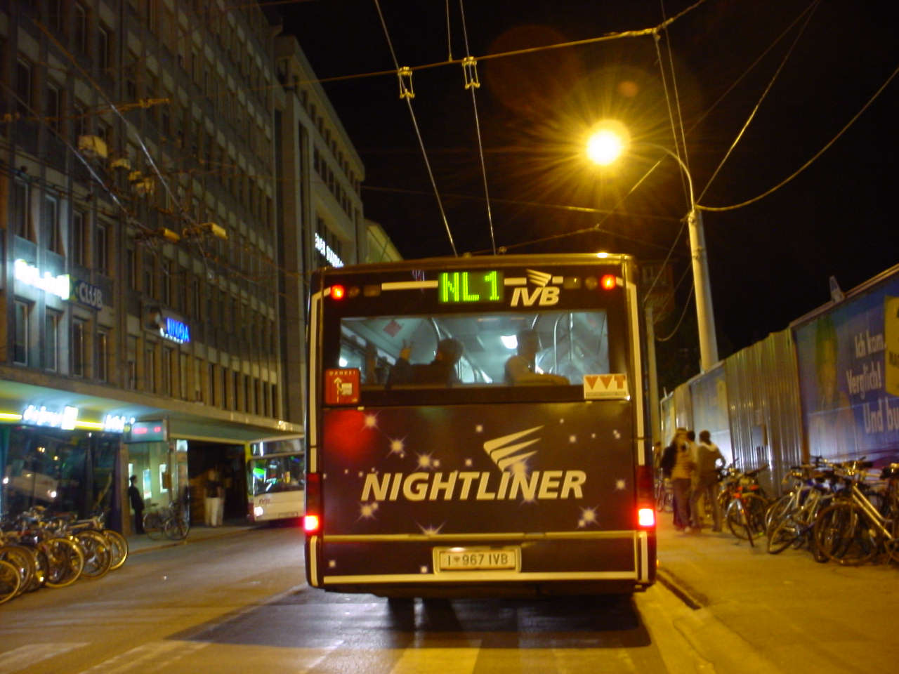 benützen) mit dem Auto durch die Stadt gegondelt um die Nightliner zu