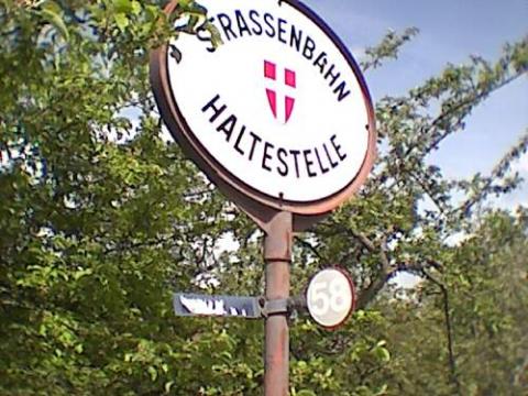 heute entdeckt. Auf der Zieltafel kann man Reste von "Endhaltestelle" oder