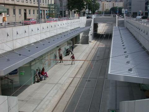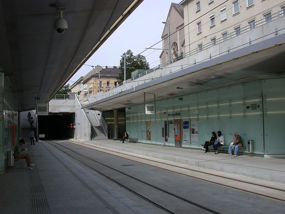 > die Gleise auf den Bahnsteig Richtung Schlachthausgasse. So kann man