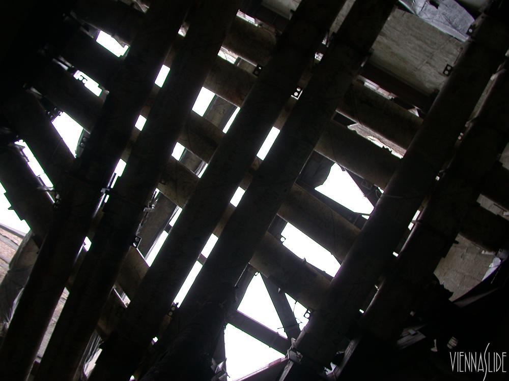 Bild 2 zeigt die Aussteifungshorizonte von unten, die kreuz und quer die