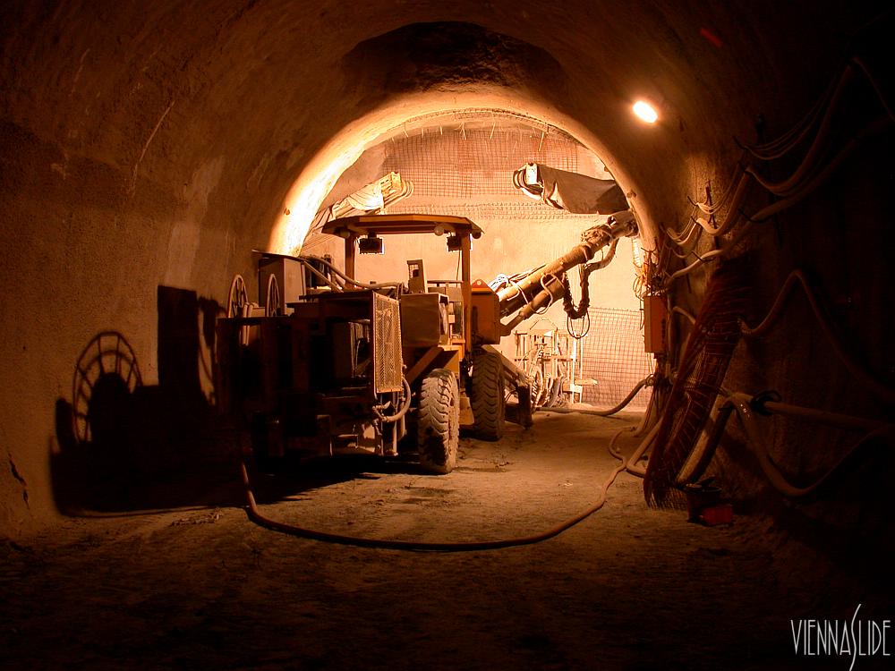 Tunnelbagger im Querschlag, unmittelbar hinter mir die Tunnelwand der U1.