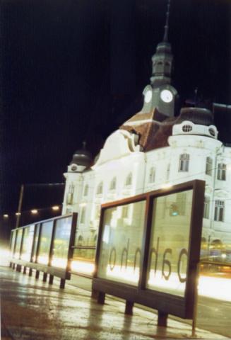 Die Glaswände mit dem Schriftzug "Bahnhof Liesing", an