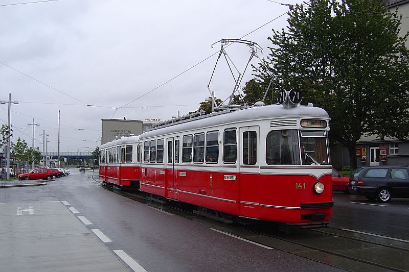 Hintergrund das t-mobile "Schiff", am anderen Foto als 71er mit Beiwagen c1