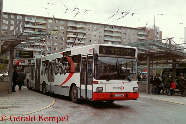 Nr. 191 auf der Linie 6 beim Bahnhof. Links kann man