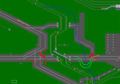 grün: 18er während der Umleitung, die Schleife St.Mmarx ist aufgelassen