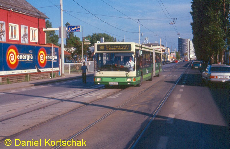 Bild 1 zeigt Bus 145 in der C.v. Hötzendorf-Straße bei der Hst.