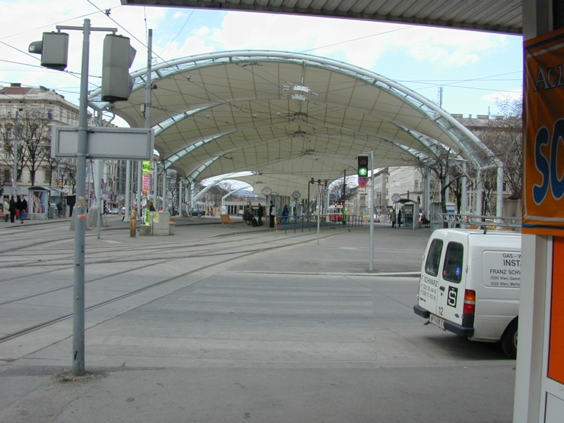 Das ehemalige U6 Aufnahmegebäude ist im Hintergrund erkennbar.