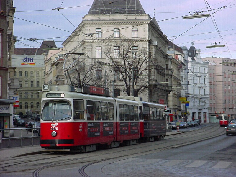 > E2 4026 mit dem beklebten c5 1426 auf der Linie 38 bei