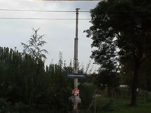freudenau_mast.jpg: ein alter oberleitungsmast in der endstelle freudenau