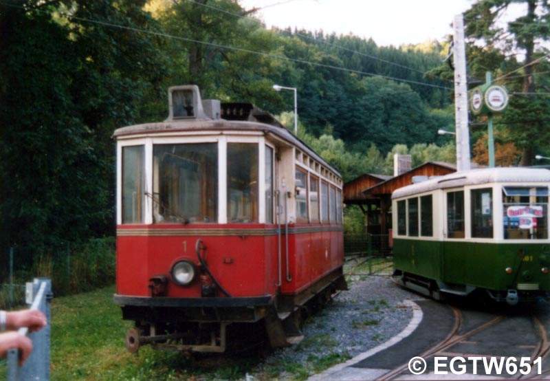 Der Triebwagen 1 wurde 1909 von der Grazer Waggonfabrik für die LokalbahnInnsbruck-Hall erbaut. Bis zur Einstellung der späteren Linie 4 der Insbrucker Straßenbahn bis 1972 in Betrieb. 1974 vom Tramway Museum Graz erborben und nach Graz gebracht.
