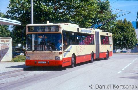 Auf den Bildern zu sehen: Ein Bus der Linie R in Freilassing und bei der Forellenwegsiedlung sowie zwei Obusse der Linie 29, ebenfalls bei der Forellenwegsiedlung.