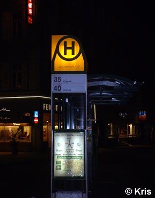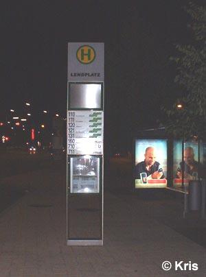 - HS 1: innenbeleuchtete Einfachhaltestelle der GVB, auf neuem Ständer