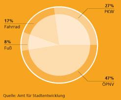 Karlsruhe werden fast 50% der Fahrten öffentlich zurückgelegt.