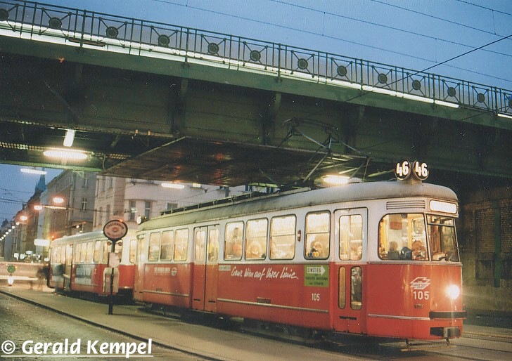 Sie zeigen den Zug 105 + 1808 bei der Station Lerchenfelder Straße U