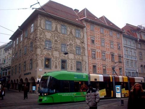 sein "Festtags-Gewand" zum Kulturhauptstadtjahr an - hier Nr. 665 mit Werbung