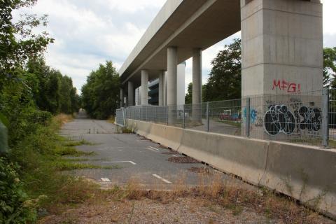 blieb ein kleines Relikt vorhanden. Die jüngere Generation wird es vermutlich nicht mal kennen, ich wuchs in der Gegend auf und war damals 15, als ich zum letzten Mal mit einem Linienbus darüber fuhr. Bis 2006 wurde die - für die U2 Verlängerung konzipierte - Straßenbrücke neben der Tangente als Bustrasse von den Linien 83A und 84A genutzt, im Winter wurden die Rampen abgetragen und die U-Bahn wurde begonnen zu bauen. Während dieser Zeit fuhr die Linie 84A über die Autobahn, der 83A wurde nur noch, bis auf einen Schulkurs in der Früh, bis Stadlau geführt. Vor kurzem besuchte ich die Gegend um das Mühlwasser wieder und war erstaunt, dass man die Rampe zwischen Autobahn und Wohnanlage (noch) nicht abgerissen hat. Die alten Lampenträger, sowie Teile der Leitschienen sind noch vorhanden, jedoch schon stark überwuchert. Richtig magisch. Da man dort legal spatzieren gehen kann, versuchte ich ungefähr aus der selben Position Fotos zu machen, wie ich sie zu Betriebszeiten der Busse in Erinnerung habe. Da mein Archiv sehr groß ist, starte ich mal mit 2 Vergleichsbildern.