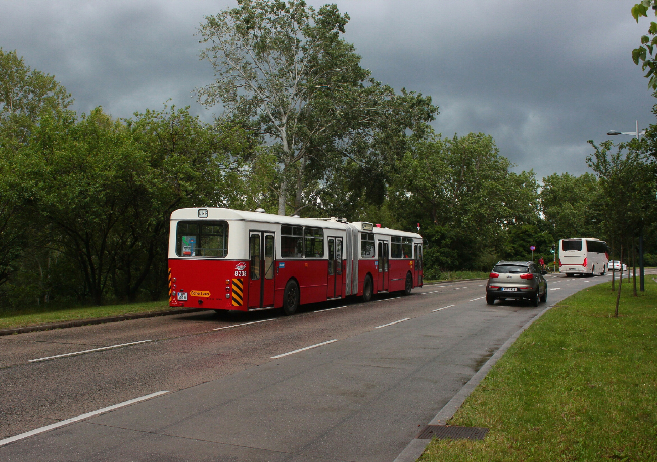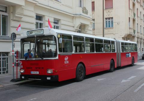 Der Bus mit der Wagennummer 8208, war von 1983 bis 1998 bei den Wiener Linien im Einsatz und gelangte danach zum ÖOM, wo er Anfang der 2000ter Jahre in Ternitz in einer Halle (ganz hinten im Eck) stand. Später wurde er immer wieder bewegt, u.A. in Natschbach, Fischamend und am Nordwestbahnhof untergestellt. Mit Inbetriebnahme der neuen Garage von Gschwindl, wurde er kurze Zeit danach auch dort (leider im Freien) geparkt.