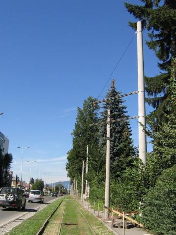 Bim (Haltestelle Brauhaus, hinten unten wo die Masten rauswachsen) in