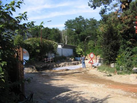Pfarrweg, wo bereits einen Meter hinuntergegraben wurde und jetzt die