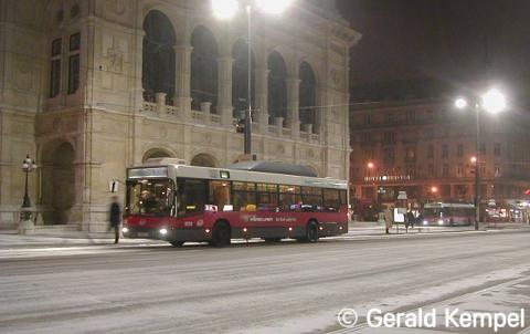Aufnahme. Sie zeigt einen NL 205 auf der Linie N66 vor der Staatsoper.