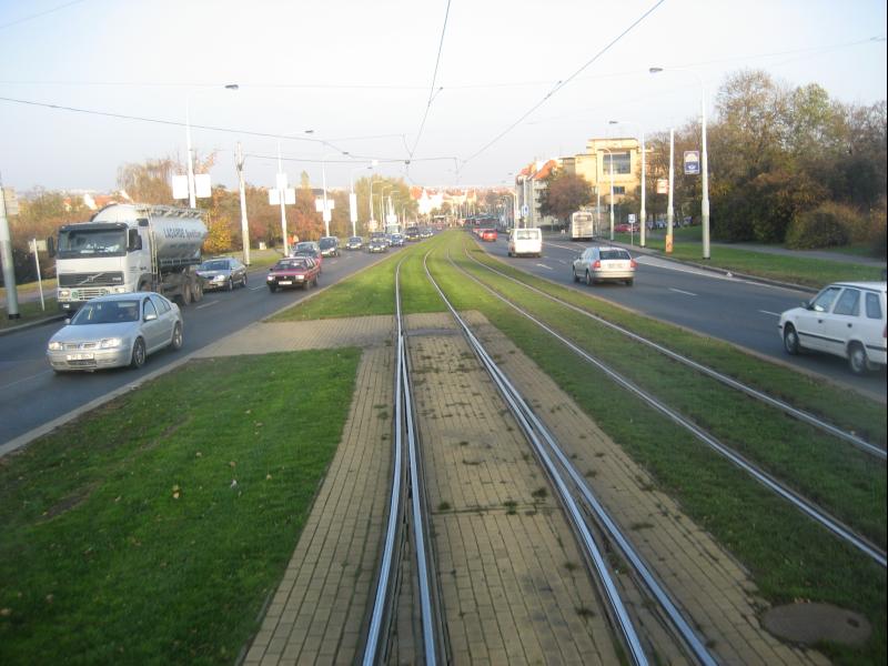 Dann eine Aufnahme des Rasengleises zwischen Hrad?anská und Prašný Most.