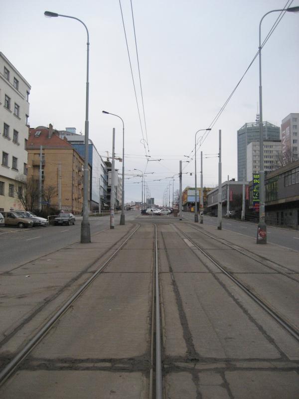 Pancrác -- die Bim macht hier nach dem Abbiegen eine seltsame