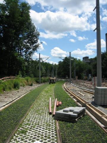 ein neues Rasengleis an der zukünftigen Verlängerung der Linie 6 ins