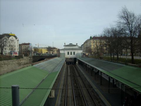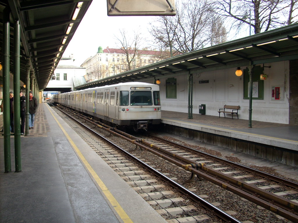 1) Eine aus der Station ausfahrende U-Garnitur Richtung Heiligenstadt.