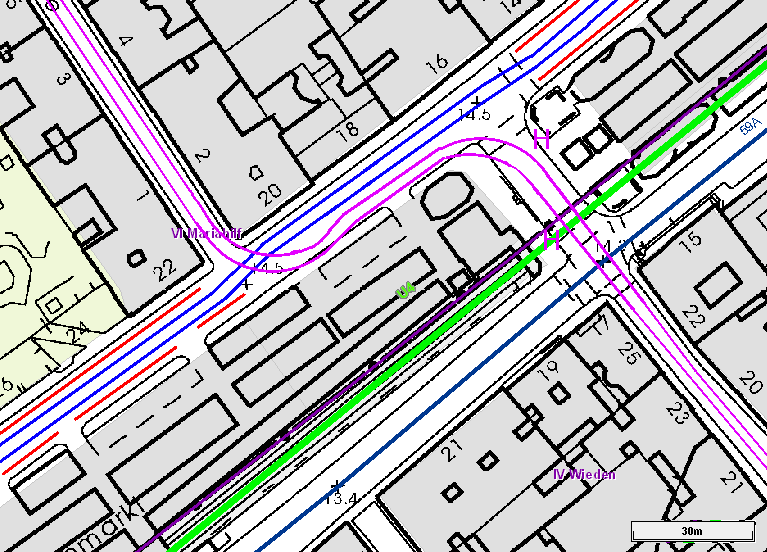 Blau ... Die Fahrspuren auf der linken Wienzeile