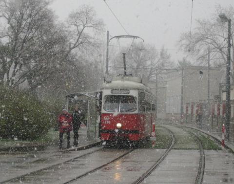 Beim Krankenhaus Hietzing wurde mir das Schneetreiben dann zu bunt und ich