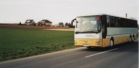 Warum beim MAN Postbus an der Frontscheibe eine rote Klebefolie