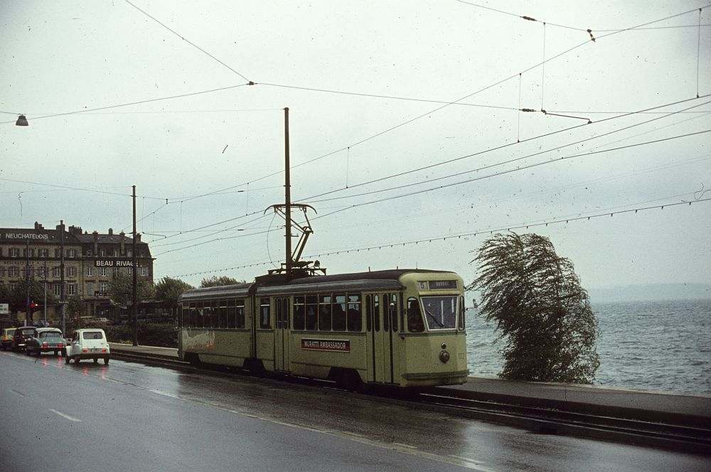 Die heute noch bestehende Linie 5 verkehrte mit den TW 1101-1104. Diese wurden 1942 von Breda für die Genueser Straßenbahn gebaut, knapp vor deren Einstellung kaufte Neuchâtel sie, um die Linie 5 ab 1967 mit modernem Wagenmaterial auszustatten. Die Verwandschaft mit dem Innsbrucker TW 60 ist ja augenscheinlich, auch Belgrad hatte solche TW des italienischen Herstellers.