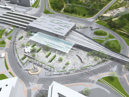 >> die bestehenden Gleise in die Unterführung. + ... Weiche