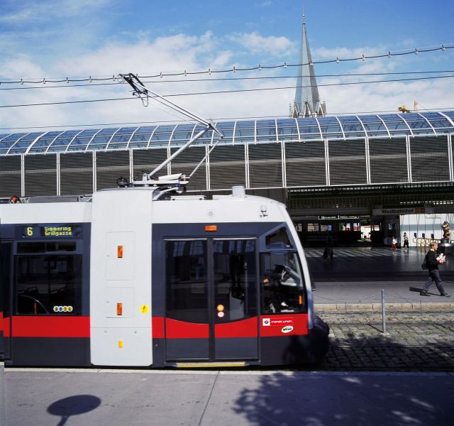 Straßenbahnen und U-Bahnen der Wiener Linien mit dem neuen Logo ?Partner im