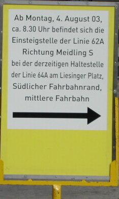 ehemaligen 64A Abfahrtsstelle verlegt, der diesbezügliche Text der gelben